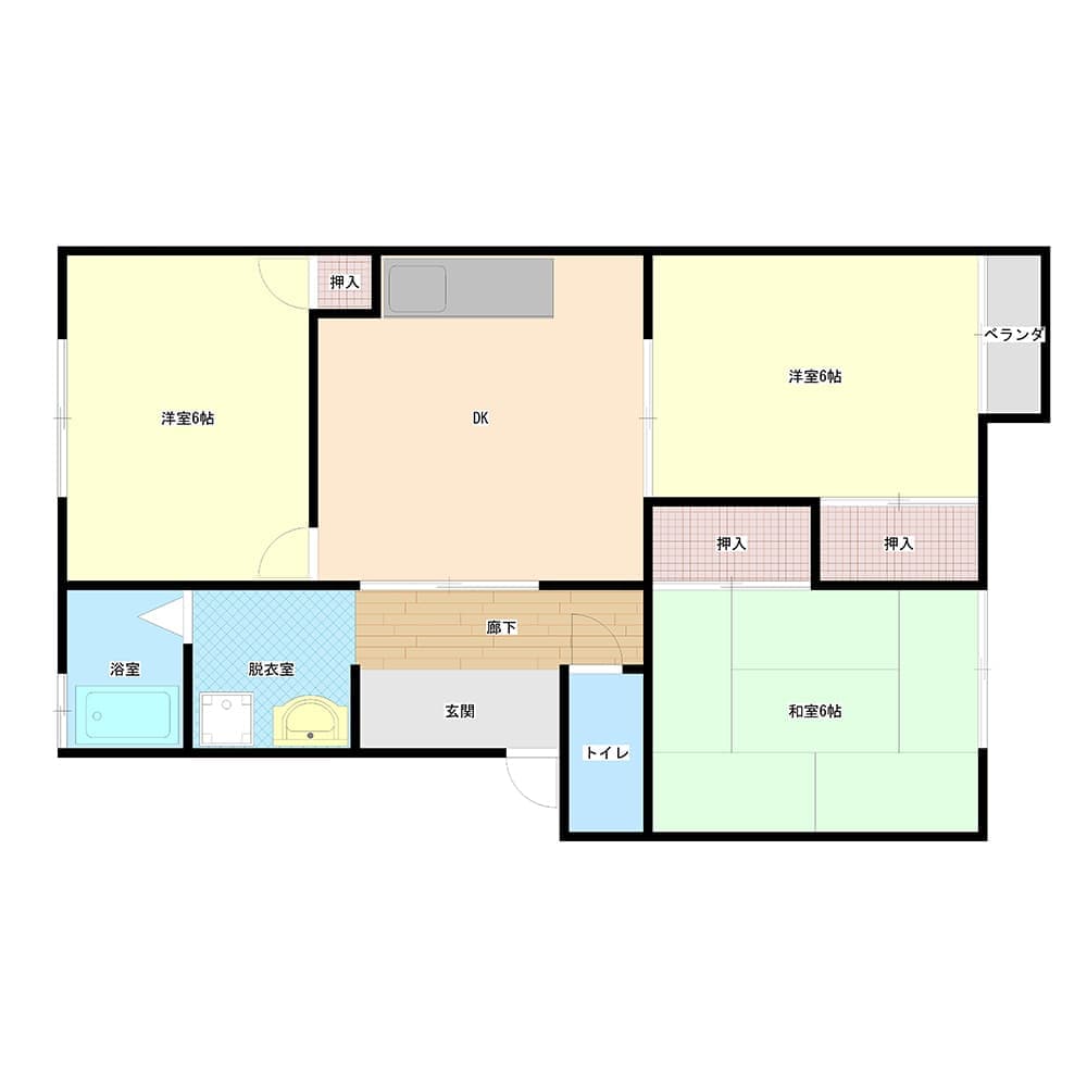 | 間取り | 和室6帖・洋室6帖・洋室6帖・DK |